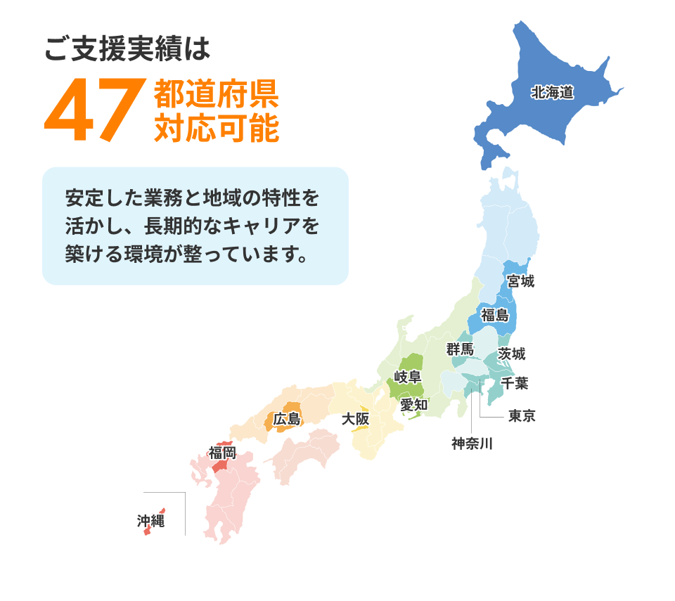 弊社は全国の建設会社様およびお仕事紹介の会社様とネットワークがありますので、各地方でも案件提案をできる事が強みです。